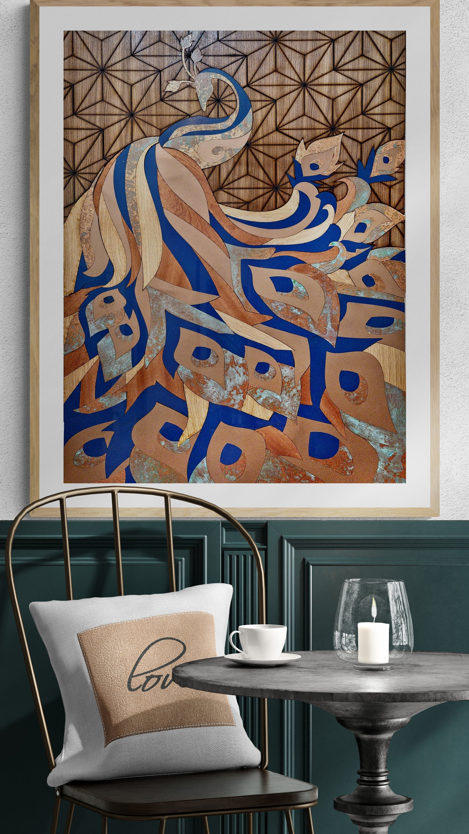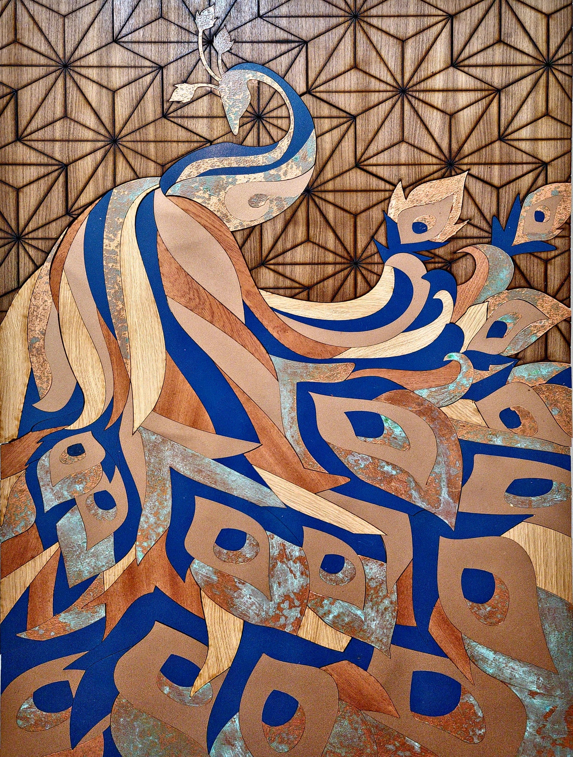 Experience the allure of this handcrafted Peacock masterpiece, a captivating blend of 5 different woods.